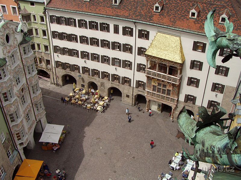náměstí v Insbrucku se pyšní radnicí se střechou z ryzího zlata