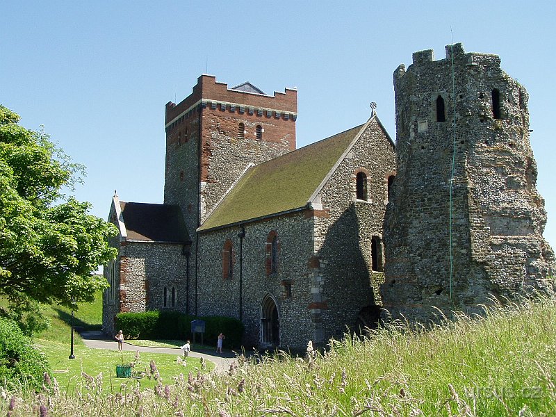 románský kostelík St. Mary in Castro ze 7.století a prastarý maják, který pamatuje i římany v Británii