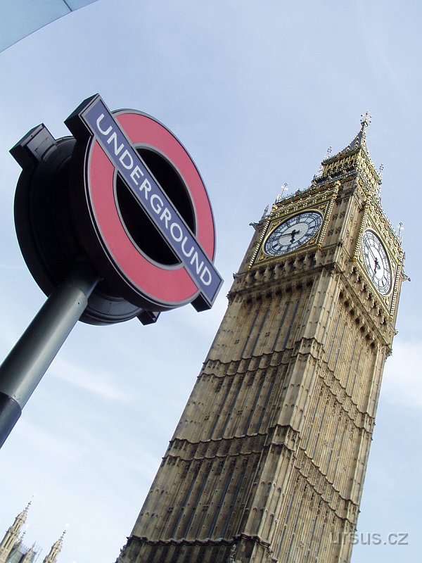 Londýn nás vítá nečekaně typickou značkou metra a známou věží se zvonem "Big Ben"