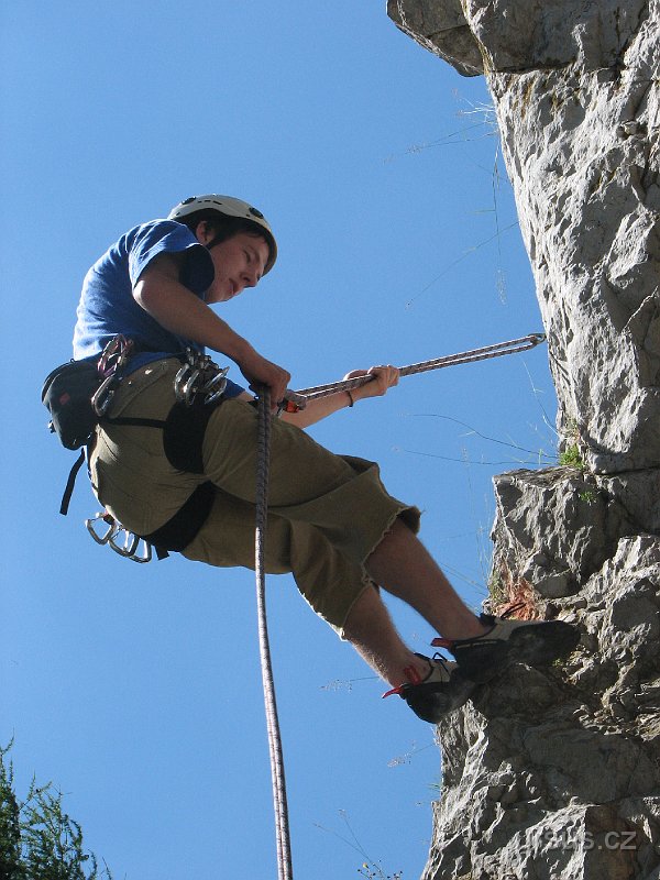 A za chvíli už jen lezeme a lezeme… Vašek právě slaňuje jednu z cest…