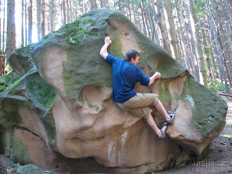 Na naší "zkratce" nacházíme několik pěkných boulderových míst... Vašek v akci!