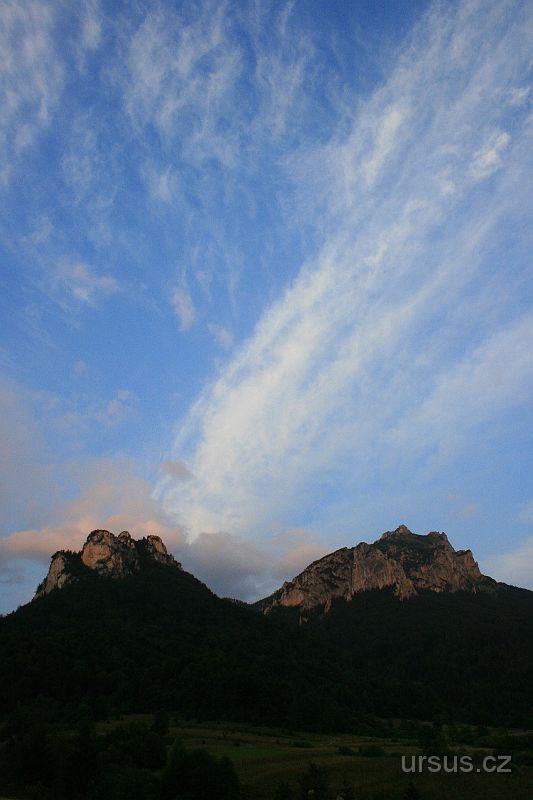 A znovu…kouzelné Poludňové skály a vpravo Velký Rozutec ve fatranském soumraku.