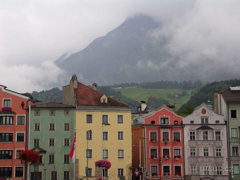 barvy výstavných Innsbruckých domů kontrastují s šedí mraků