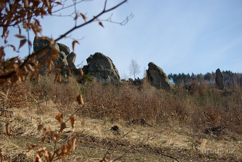 A jsme tady! Skály pod Tisovým v obci Hošťálková tvoří čtyři nevysoké věžičky.