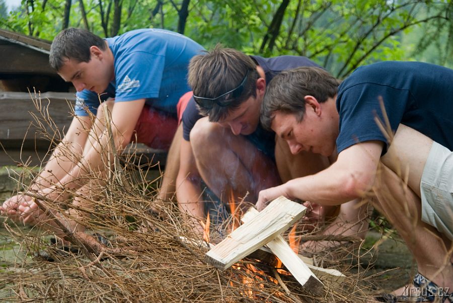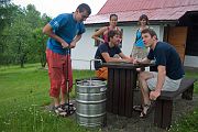 Naštěstí máme hned vedle ještě jednu romantickou studánku, takže s pomocí našich bystrých hlav a zlatých českých rukou jsme mohli zlatý mok směle stáčet:-)