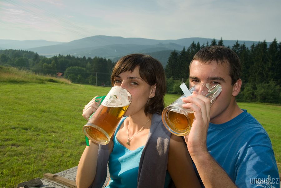 Pánové v dámských dresech :-) u našeho přírodního výčepu...