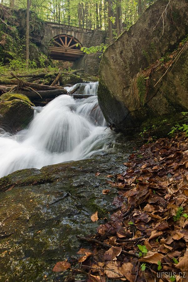 Vedlejší přítok Stříbrného potoka tvoří s podzimním listím a se zajímavým mostem také pěknou kompozici.