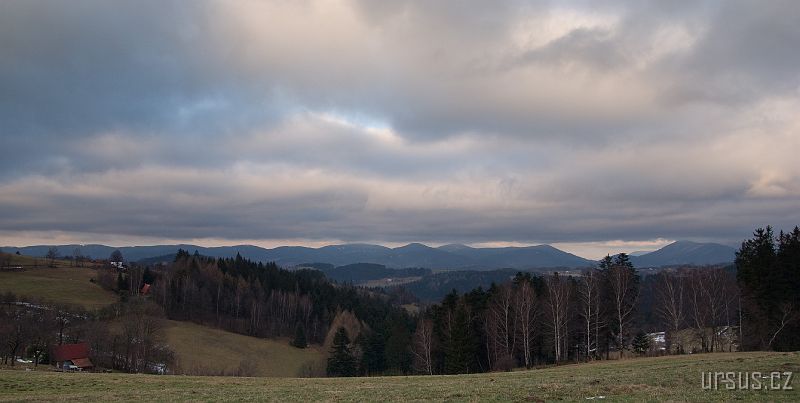 A tady pohled na duhou stranu- Veřovské vrchy a Radhošť.