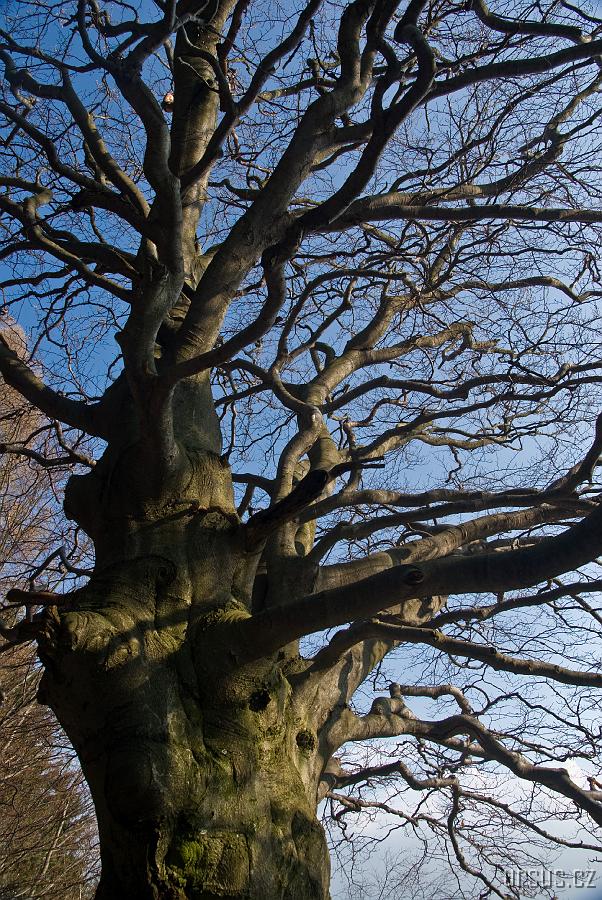Úctyhodný buk lesní (Fagus sylvaticus) na Soláni už něco pamatuje, ale takovéhle rychlé jaro už dlouho nezažil.
