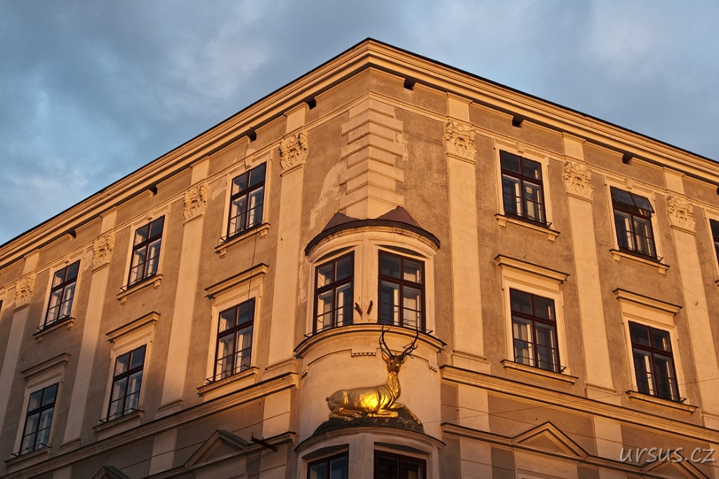 Dům u zlatého jelena na rohu mezi Horním a Dolním náměstím.