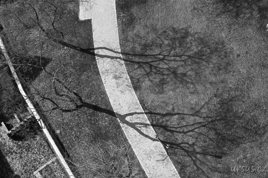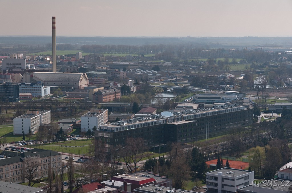 Pohled na druhou stranu překvapuje geometrickou pravidelností některých budov. V záběru jsou VŠ koleje, budova Pedagogické i Přírodovědecké fakulty. Poznáte je?:-)