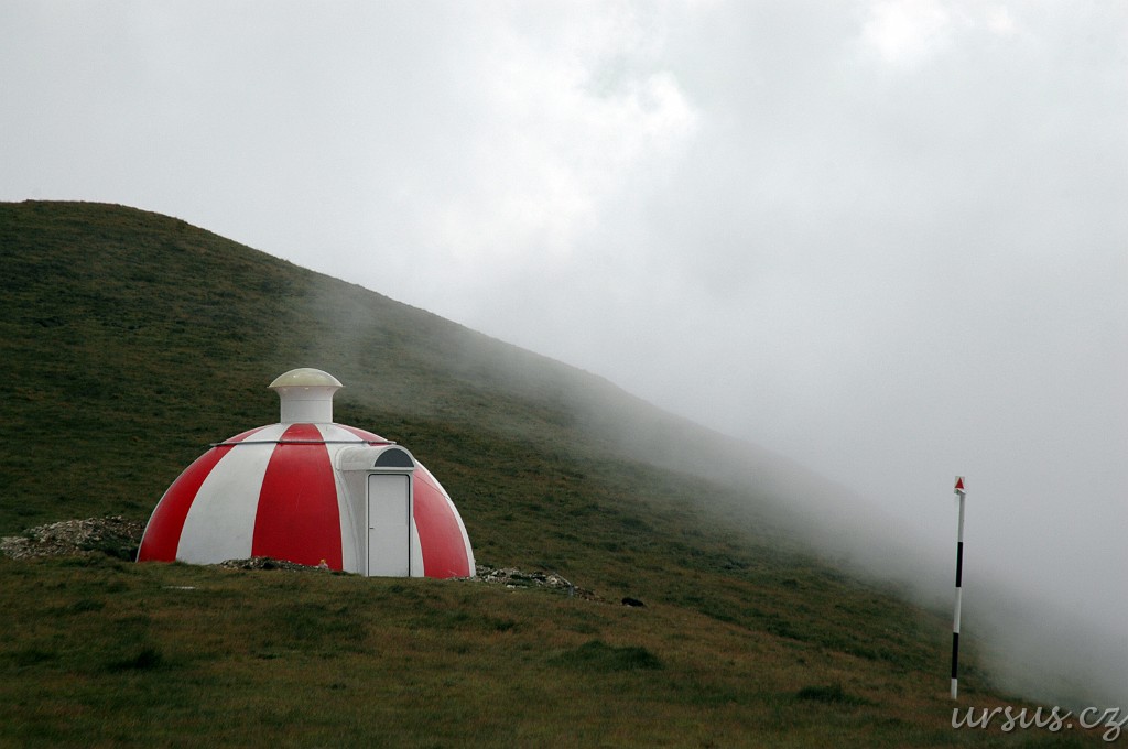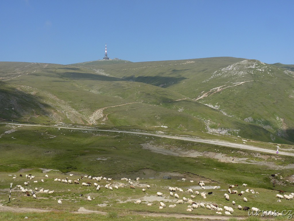 Vrchol Omulu po ránu. Ten na tom byl podobně jako první část horské "podkovy" - chaty, smrad ze záchodů a všude bordel...