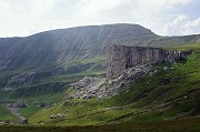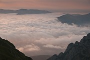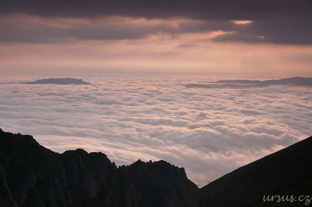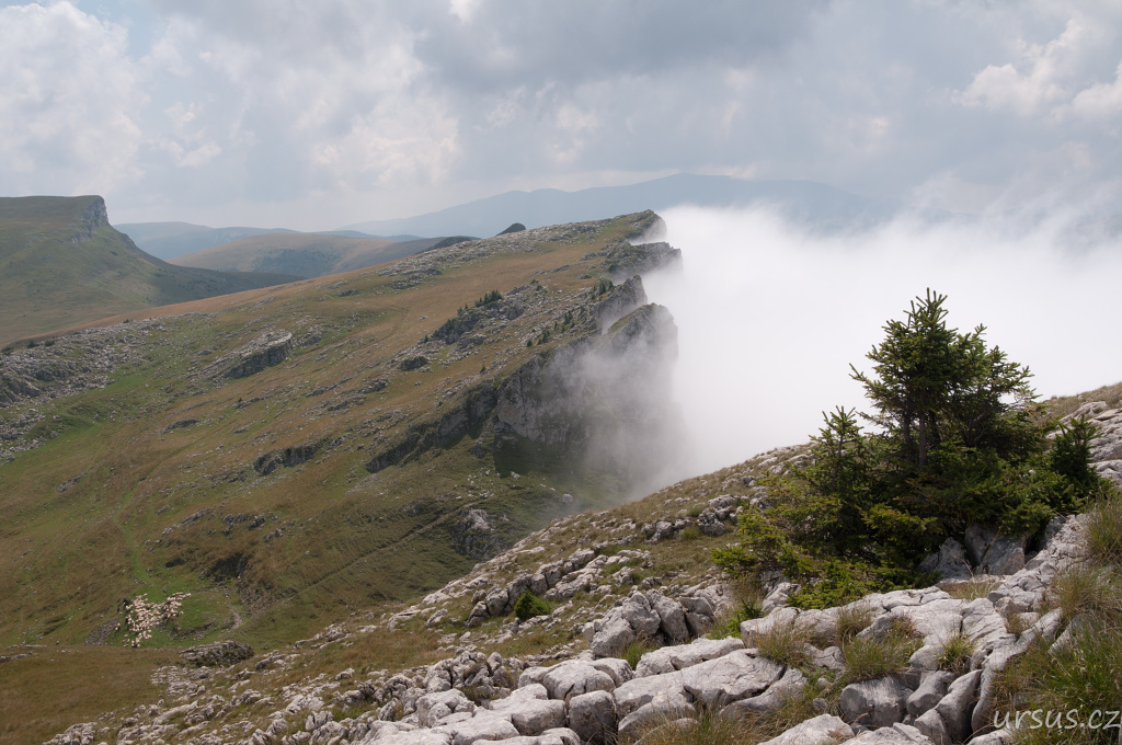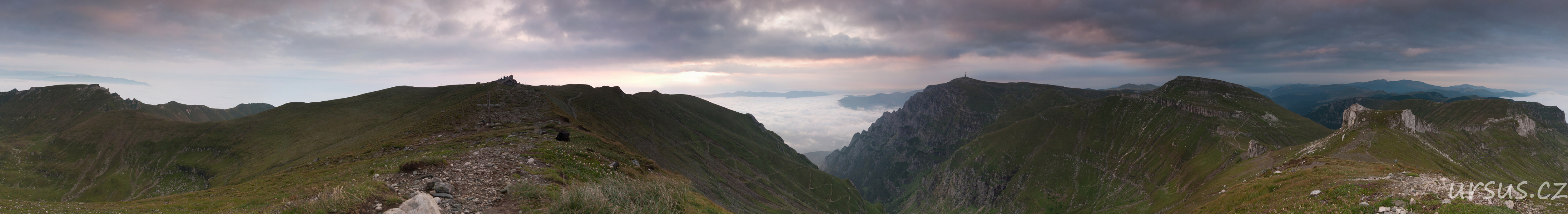 Pohoří Bucegi je celkově geomorfologicky dosti zajímavé. Jak už jsem tu vícekrát zmiňoval, jedná se o podkovu, která je z vnější strany ohraničena velmi prudkými a vysokými skalními stěnami (jak bylo často patrné na předchozích fotkách). Nad nimi se však rozprostírá naprosto nevinná a poměrně plochá náhorní rovina. Zde je krásně vidět, jak se dole pod kolmými stěnami, kde je chladněji vaří mlha a dere se stále nahoru.