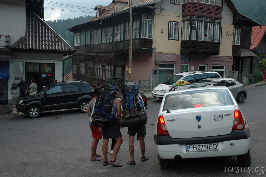 Potřebujeme se dostat asi 20km k výchozímu bodu třetí fáze našeho tripu - pod pohoří Piatra Craiului, do vesničky Peštera. Autobus tu nejede, pěšky je to daleko, takže na scénu opět přichází taxíky. Cenově vychází stejně jako u nás, takže když je člověk kompletně naplní, není cesta nijak drahá.