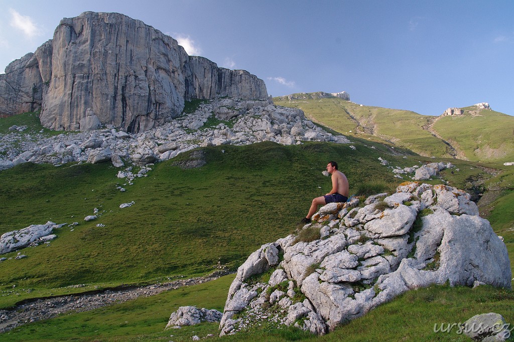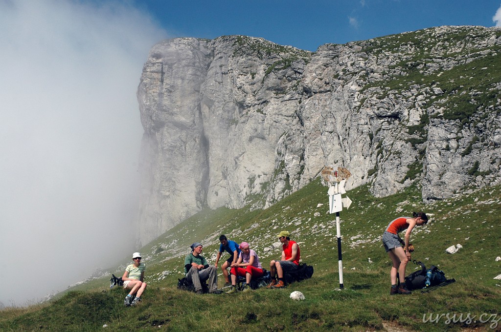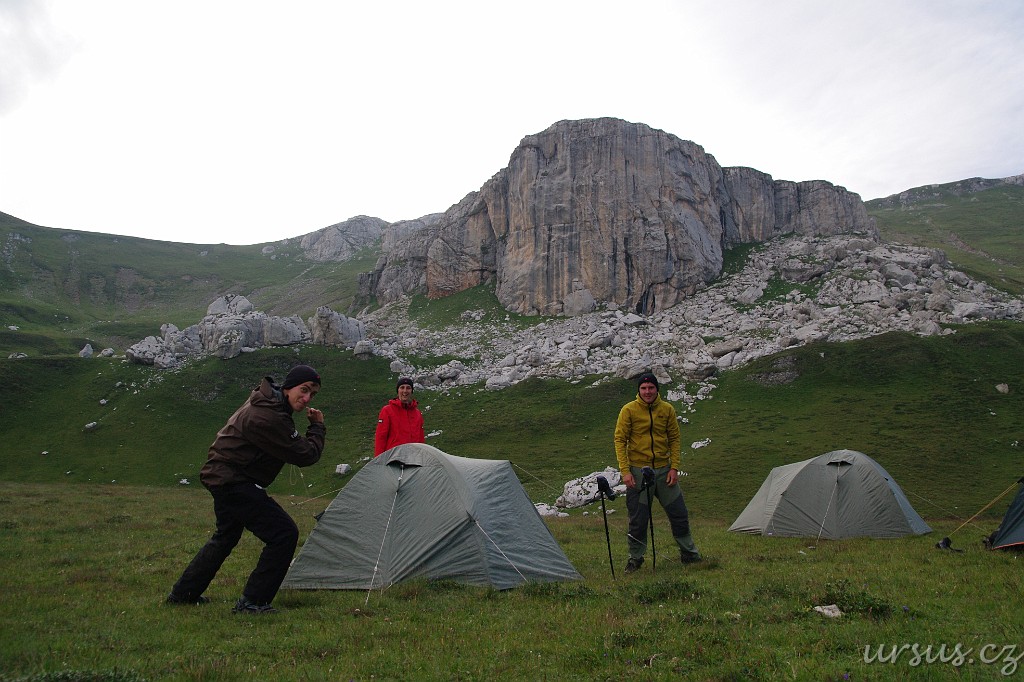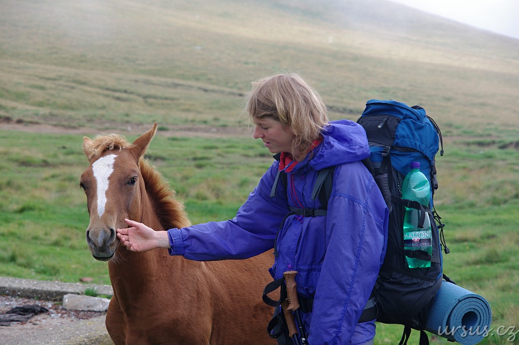 Šest nejrychlejších a nejméně unavených hřebců a klisen se ještě vydalo na Omul (2505m n.m.), já s Maruškou jsme čekali v sedle, odpočívali, vařili kafe a vybírali místo na spaní.