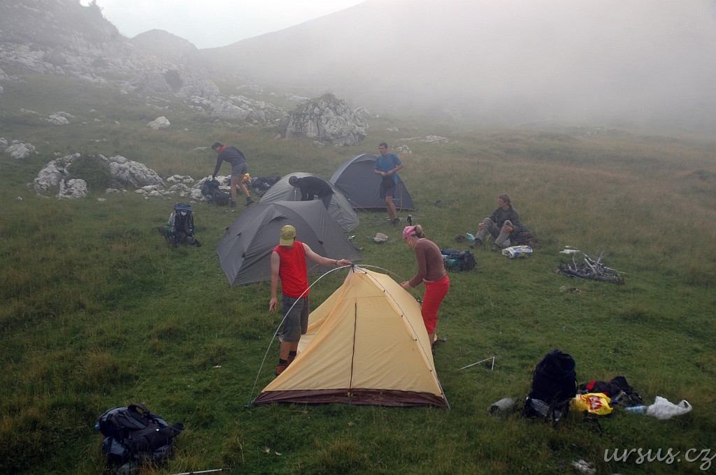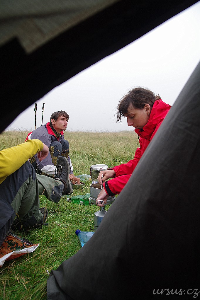 Víťův výraz hovoří za vše, blíží se něco nepříjemného...A taky že přišlo. Vlna silných bouřek a dešťů udělala z většiny stanů plovoucí vory a tak se většina výpravy vydala na strastiplnou cestu zpět do asi 1km vzdáleného turistického refugia. My jsme měli s Maruškou poměrně sucho, takže jsme zůstali na místě a sledovali stany, jestli náhodou nezatížené neuletí. naštěstí vydžely všechny:)