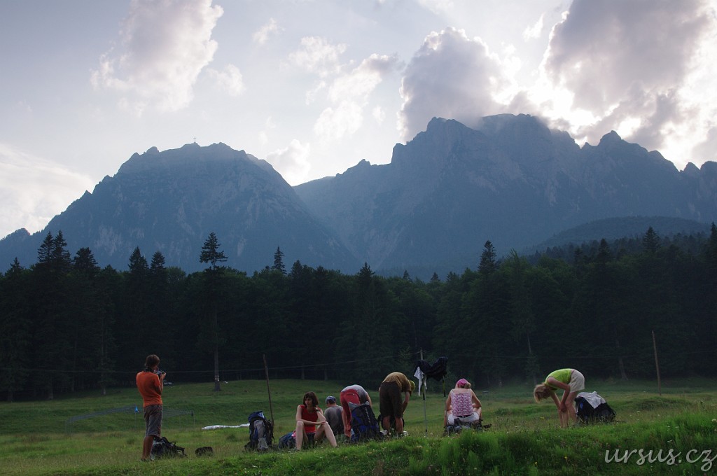 Po chvíli hledání a doptávání se jsme došli do kempu na kraji města. Nikdo tu nic nevybíral, nikdo se tu o nic příliš nestaral. My byli spokojení, že nikdo nic nechce a máme rovný plac na stany s nádherným výhledem na stěny Bucegi.