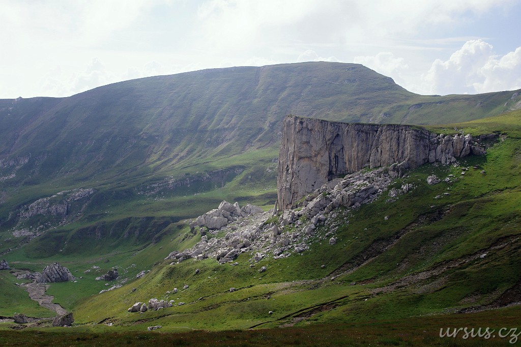 Pomalu se blížíme na konec podkovy a scházíme pod skalní stěny.