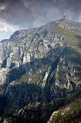 Pohled do stěn protějšího vrcholu Costila (2490m). Vysílač trochu připomínal Praděd a byl vidět opravdu zdaleka. Sledovali jsme ho už z prvního pohoří Baiului.