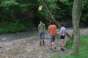 Po návratu do kempu nám Fenek živě vyprávěl, jak s Evčou a později ještě s Aničkou viděli medvěda u místní popelnice. Moc veselo nám z toho nebylo, protože tihle popelnicoví medvědi bývyjí relativně nejnebezpečnější. Jsou moc "ochočení", zvyklí na lidi a tudíž nebojácní a drzí. Takže jsme samozřejmě nic nenechali náhodě a jali se věšet jídlo na strom. A tady začíná malý fotoseriál aneb příběhy medvídka Pů...