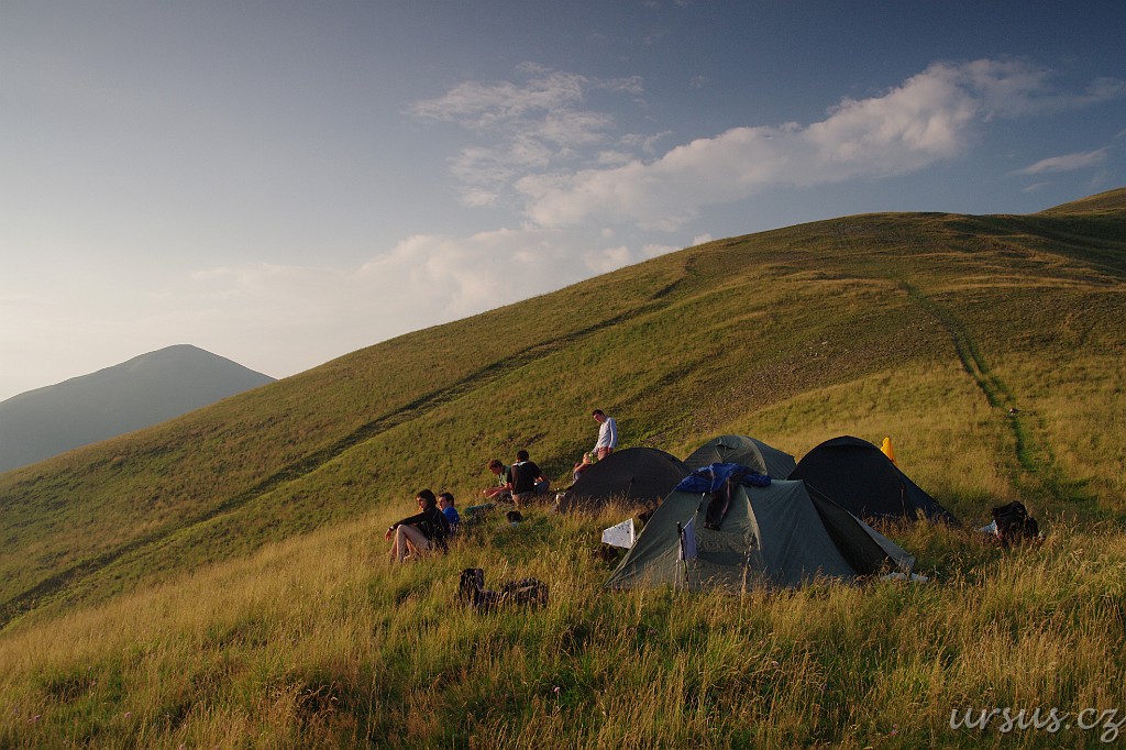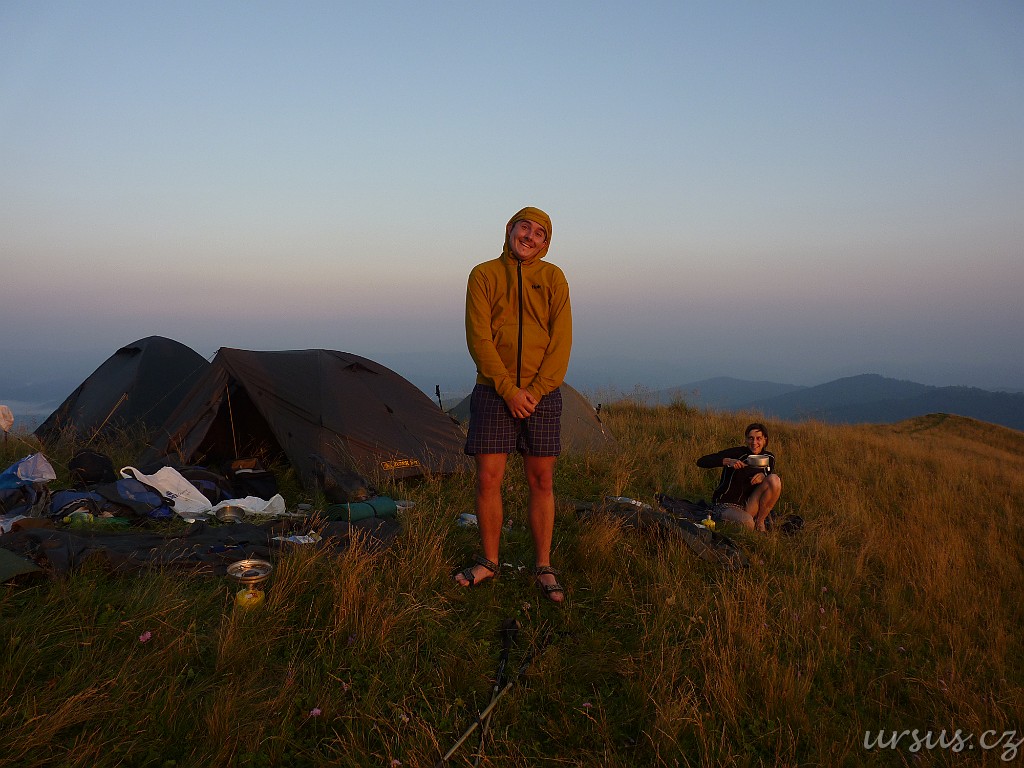 Nakonec jsme splnili plán a dorazili do sedla. Byl tu ideální travnatý plac na spaní, takže jsme už nic nevymýšleli a jali se rozbít tábor:)
