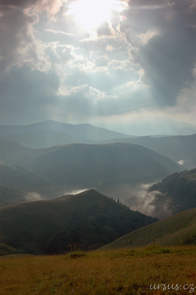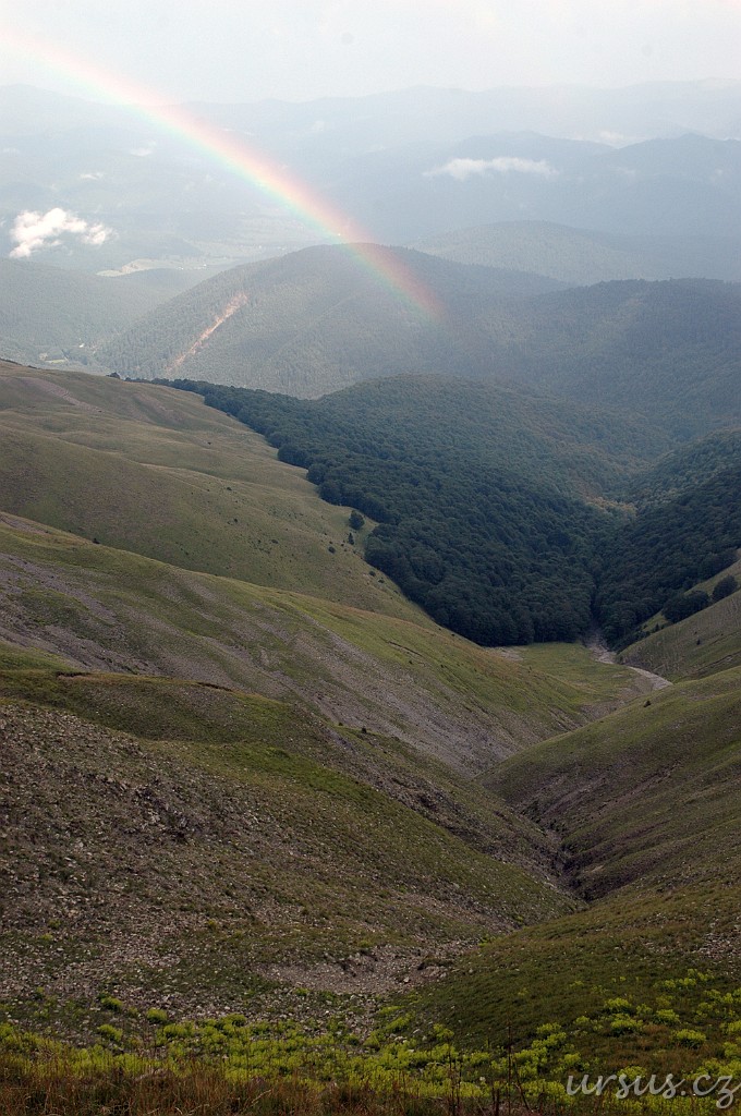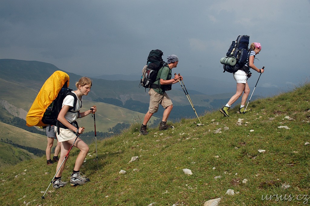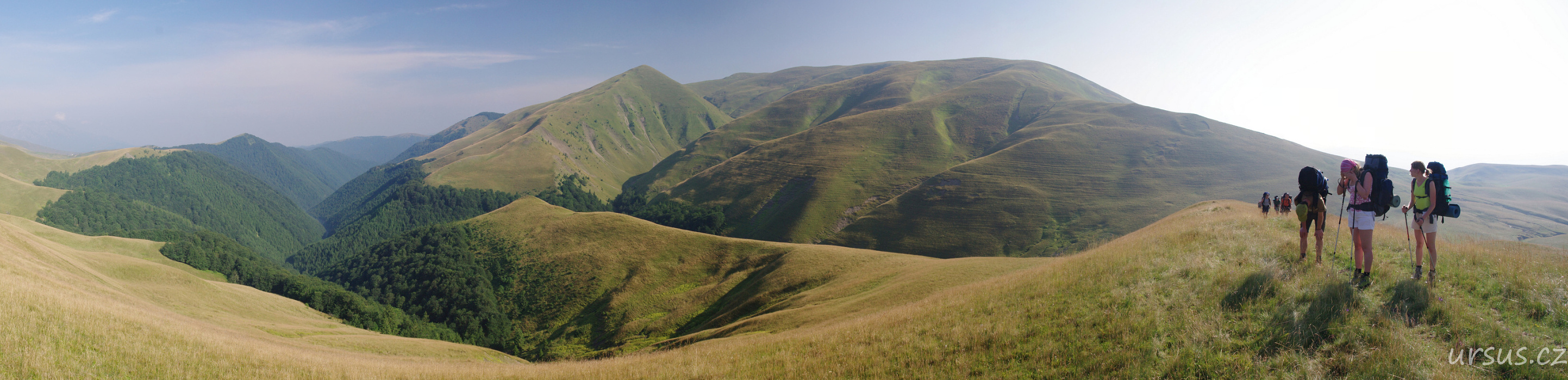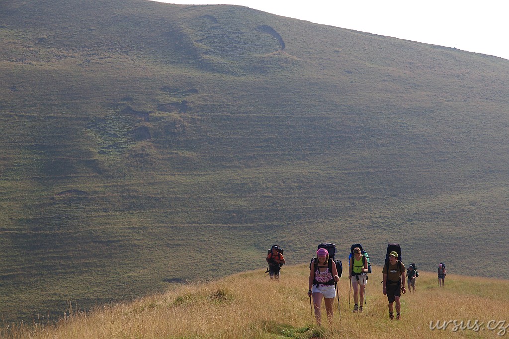 Hned po ránu nás čekal ostrý výstup lesem a pak už jsme se konečně dostali nad hranici souvislého lesa. Pěkně to jde vidět na příkladu protějšího hřebene.