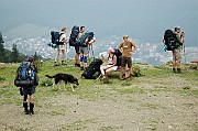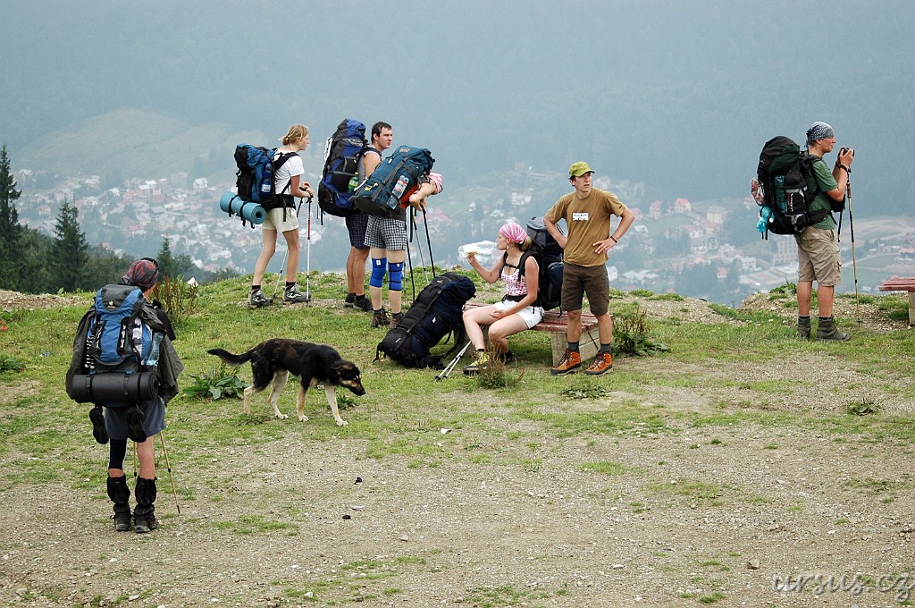Azuga pod námi a vlčák před námi. Vypadal uboze, tak jsem mu hodil zbytek chleba a tím nás přijal za své...