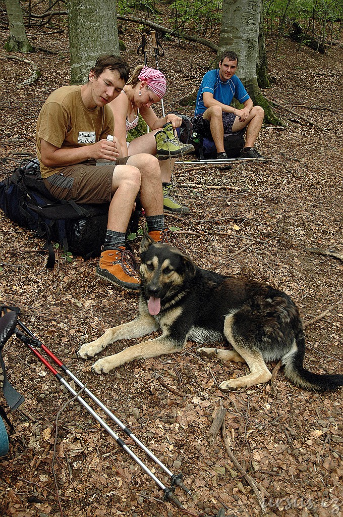 Dejv šel s náma celou cestu dolů, tedy asi 600 výškových metrů! Dole u vesnice jsme museli přes plot s ostnatým drátem a teprve tam se náš pes zasekl. Nevím jestli chudák šplhal zase nahoru nebo jak skončilo jeho putování...