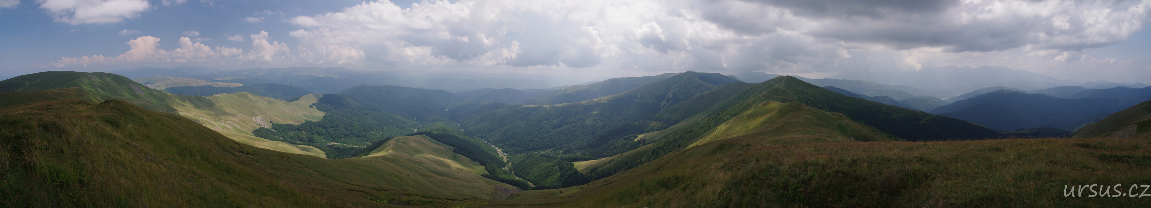 Krásný výhled z nejvyššího vrcholu pohoří Baiului (Varful Neamtului, 1923m n.m.).