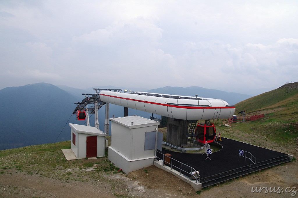 A taky pravda tato velmi nově vypadající moderní lanovka vedoucí z městečka Azuga.