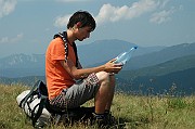 Obrovská výhoda těchhle kopečků spočívá v tom, že většina z nich šla obejít po traverzu. Takže jsme ši víceméně stále mírně dokopce, žádné nahoru dolů jak to známe třeba z Roháčů. Tady si však kluci výjimečně na jeden vrcholek vyběhli.