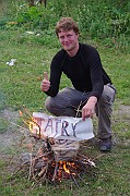 Víc jak měsíc před touto akcí fotil Hus Afroše v Olomouci u silnice jak s touto cedulí stopuje na Slovensko, a zanedlouho poté do Rumunska. Dnes jsme mohli tuto cedulku slavnostně upálit*