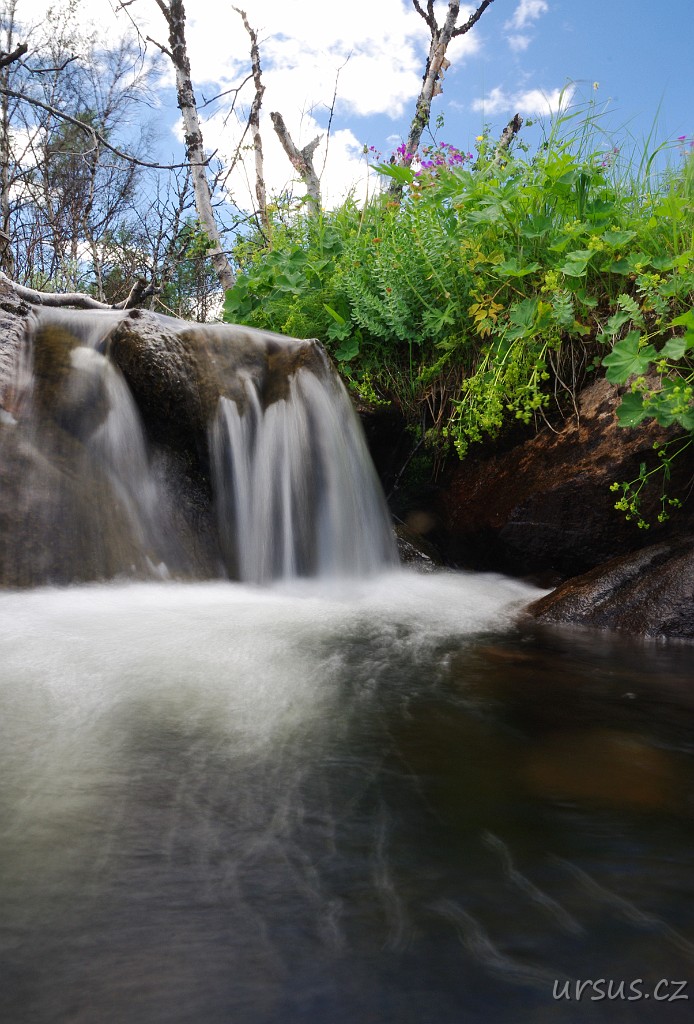 Zastavujeme u potůčku zchladit nohy a poobědvat.