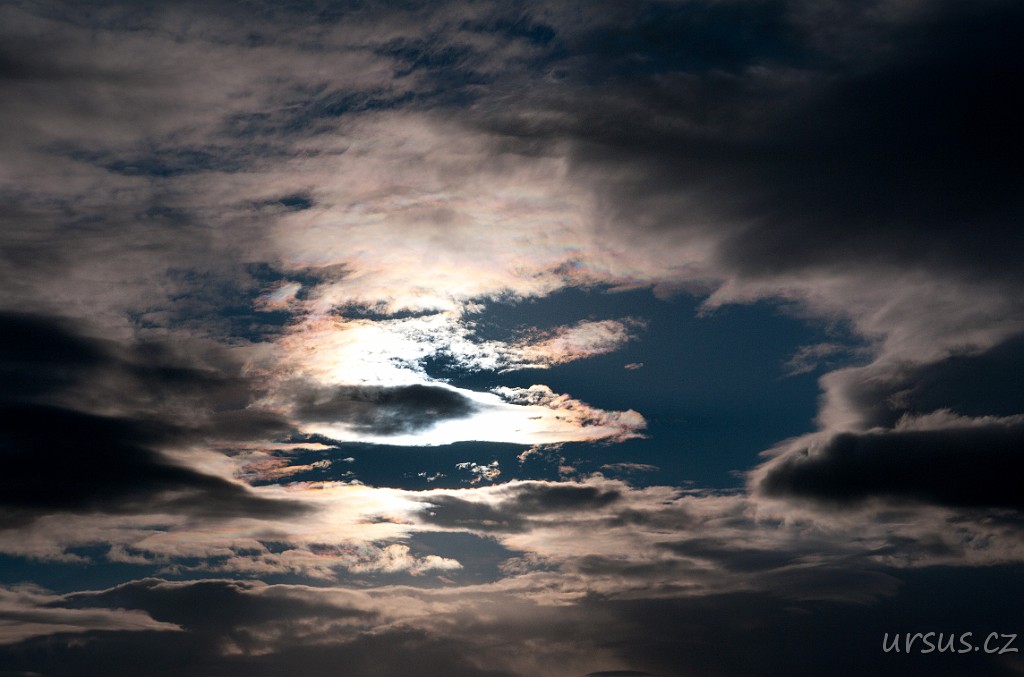 Aby toho nebylo málo, na nebi jsem zpozoroval jev zvaný "irizace oblaků". Jev vzniká ohybem a interferencí světla při průchodu slunečních paprsků kapičkami oblačné vrstvy a dodává tak mrakům výrazné perleťové zbarvení.