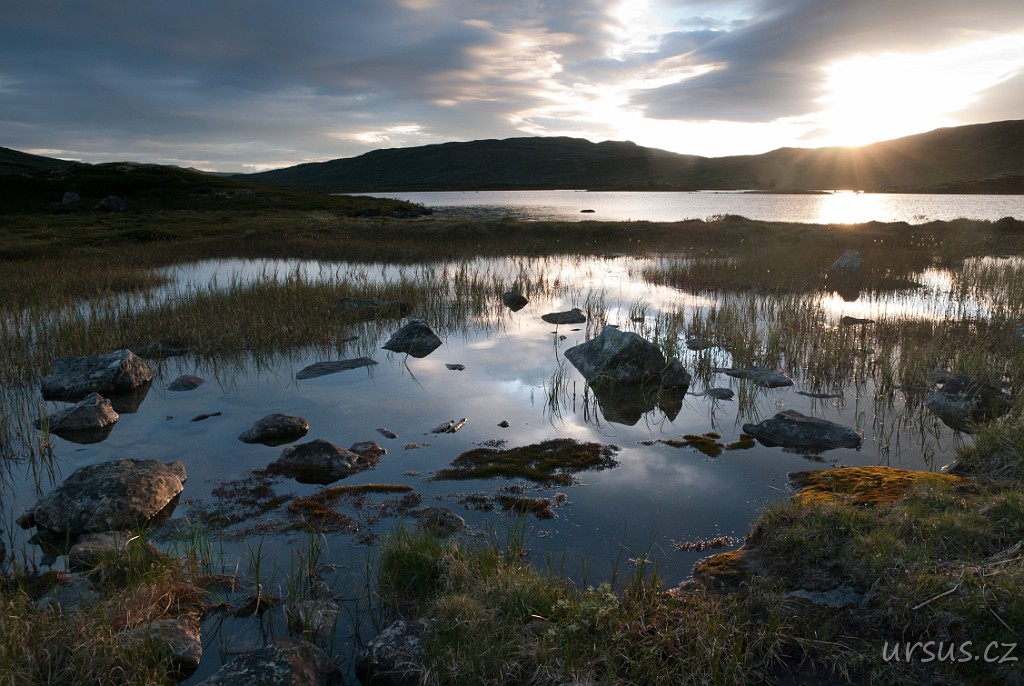 A protože do večera bylo daleko, vyrazili jsme s Jirkou na kopec Bjordalsnutan tyčící se nad jezerem.