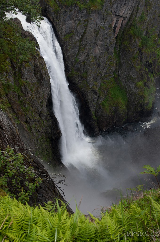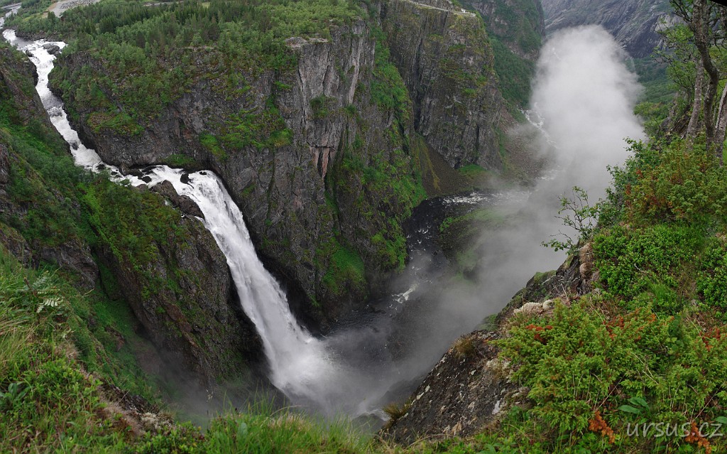Vodopád Voringfossen padá 180 metrovým skokem z náhorní plošiny.