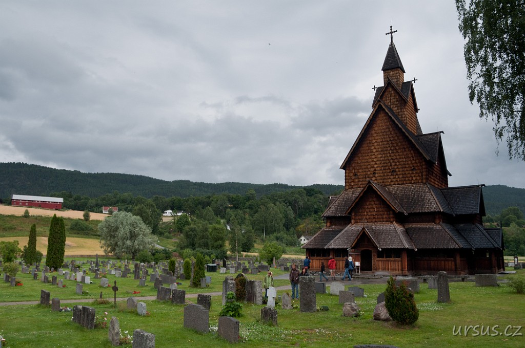 Opouštíme hory a na cestě ku domovu zastavujeme v kraji Telemark u kostelíku v Heddalu.