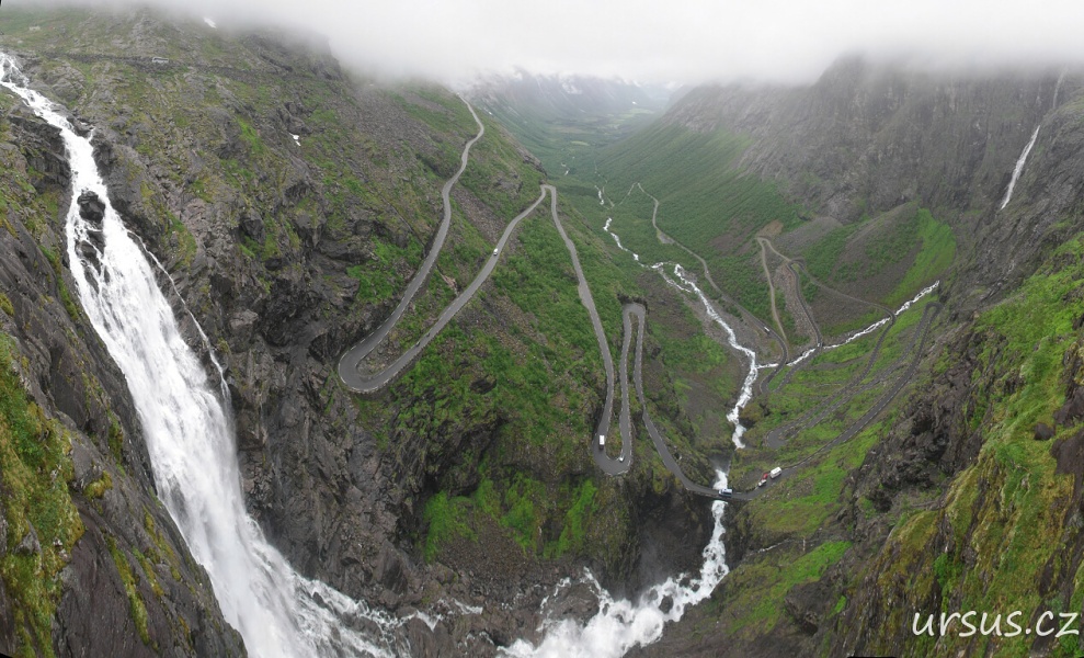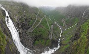 Druhý den stoupáme autobusem do průsmyku Trollstigen známou Cestou trollů. Průsmykem lidé odpradávna převáděli dobytek i zboží a v r.1936 zde byla vybudována unikátní silnice, která stoupá od Romsdalfjordu v jedenácti ostrých serpentinách do nejvyššího bodu ve výši 830 m n.m.