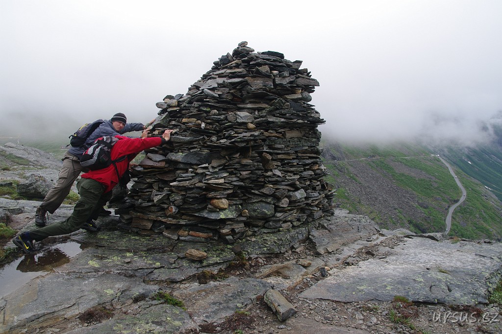 Po výstupu na Snohettu v NP Dovrefjell jsme strávili noc v kempu pod Stěnou trollů (Trollvegen). Počasí však bylo toho názoru, že nám 1000m vysokou horolezeckou stěnu neodhalí.
