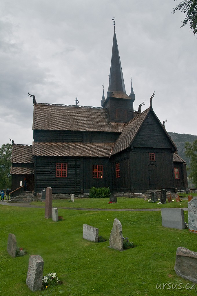 Dřevěný kostelík Stavkyrkje ve městě Lom byl postaven ve 12. století v normandském stylu.