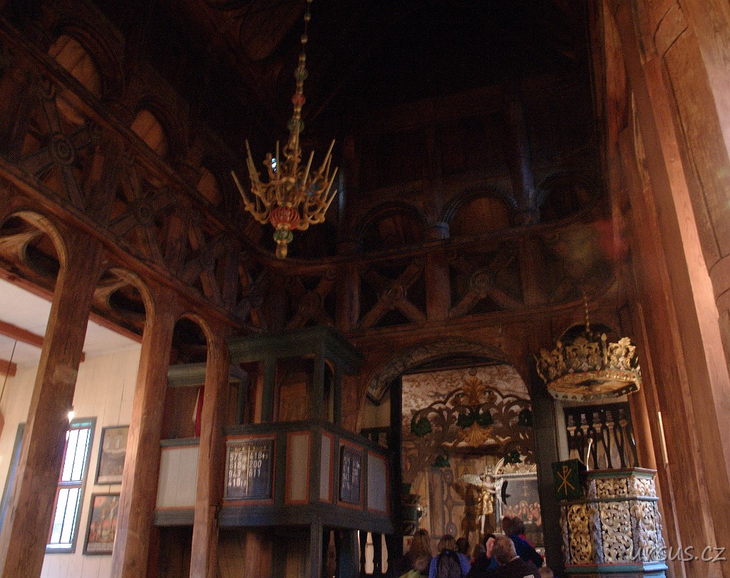 Kostel má půdorys kříže a dodnes je používán k bohoslužbám.