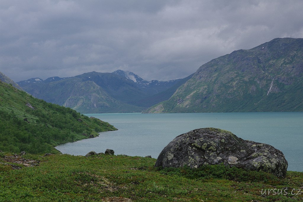 Jezero Gjende je dlouhé 18 km a lze na něm vidět typické ledovcové formování.