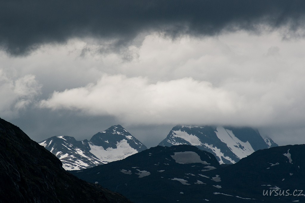 I přes pošmourné počasí se na chvíli poodhalili velikáni v centrálním Jotunheimenu.