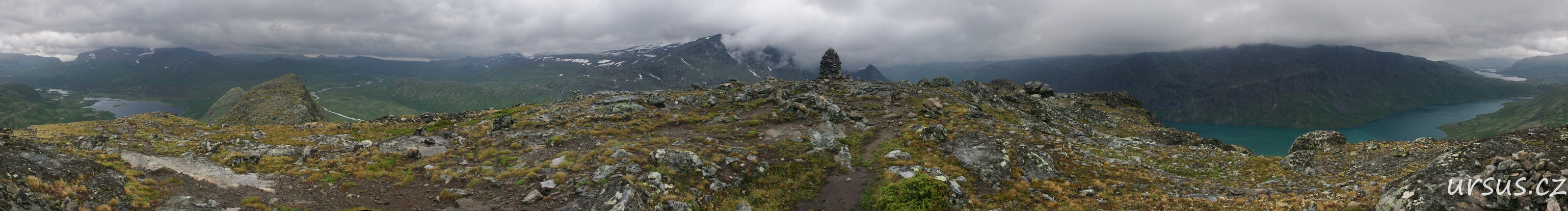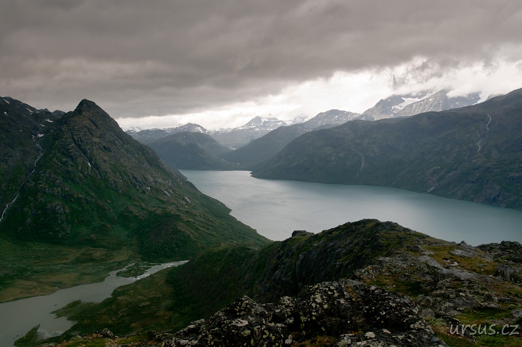 Bessegenský hřeben je známý krásnými výhledy na jezera Gjende a Bessvatnet i na horské velikány v NP Jotunheimen (název v překladu znamená "Domov obrů").