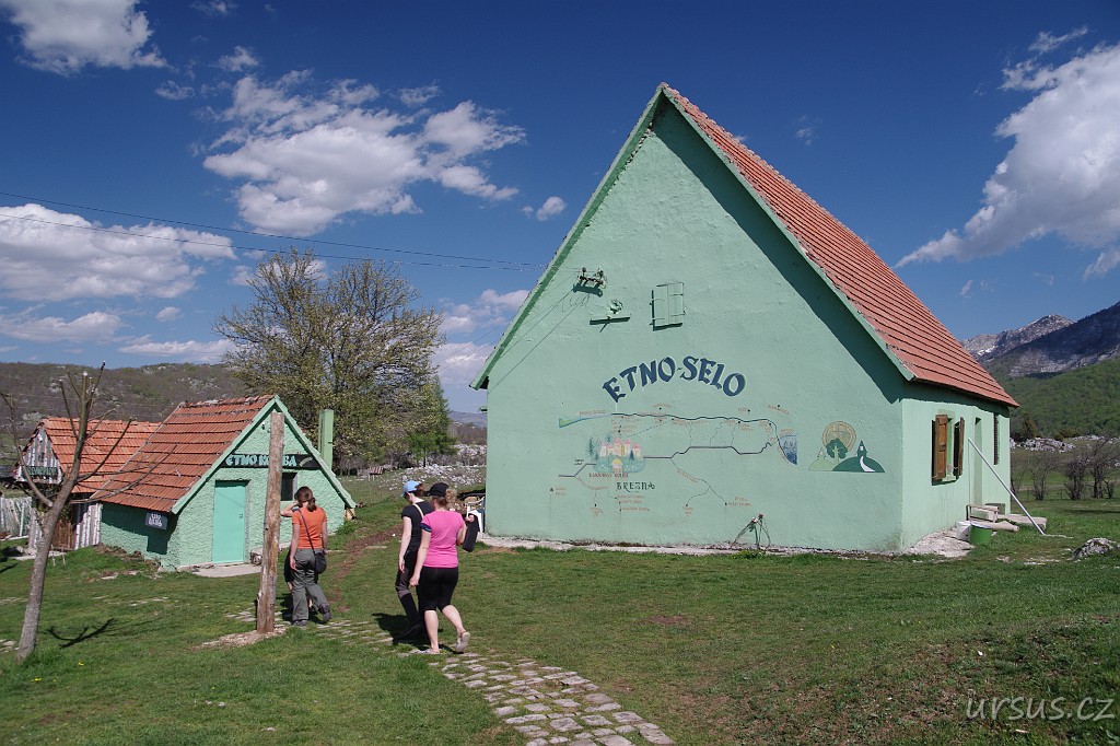 Další neplánovaná zastávka je v tzv. Etno-selu. Nalákalo nás na něj velké množství upoutávek po cestě (na 3 km jsem napočítal 25 cedulí). Proto jsme si mysleli, že to bude nějaký skanzen. Omyl! Byla tam restaurace, drahé ubytování a 2 chlapíci, snažící se nás přesvědčit, že do Durmitoru už dnes nedojedeme a že máme zůstat. Nic než lákadlo na bohaté zápaďáky...