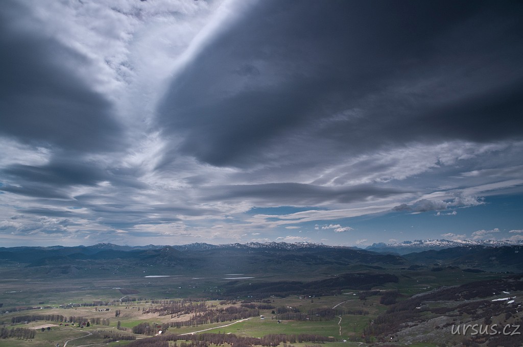 Žabljak je známé středisko jak zimní, tak letní sezóny, proto není divu, že je tu mnoho lanovek. Všimněte si barevného zabarvení oblaku vpravo od sloupu- jedná se o tzv. irizaci.