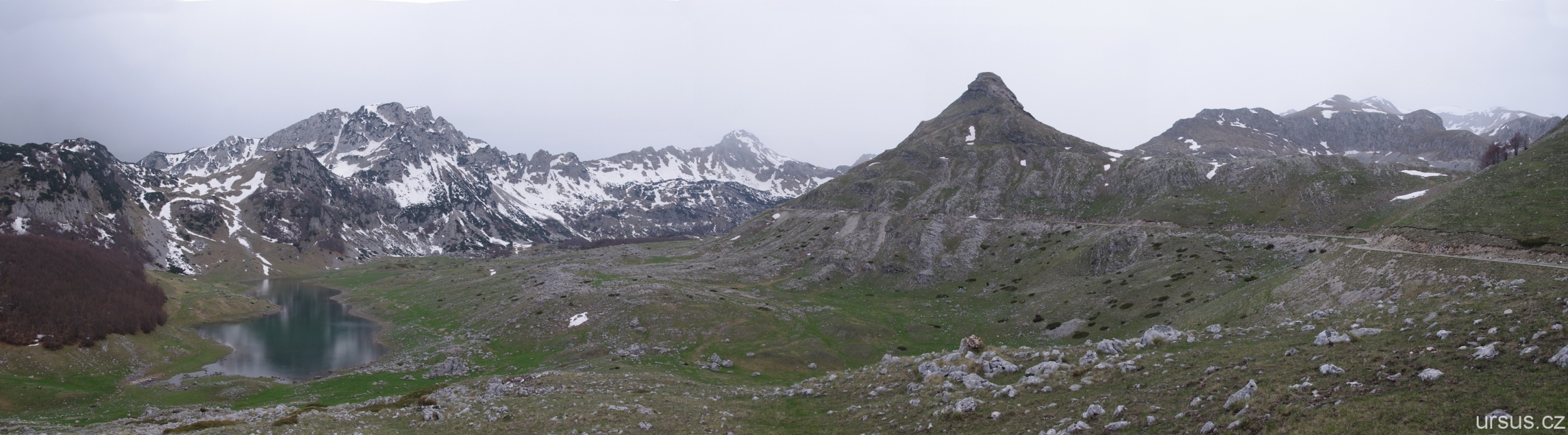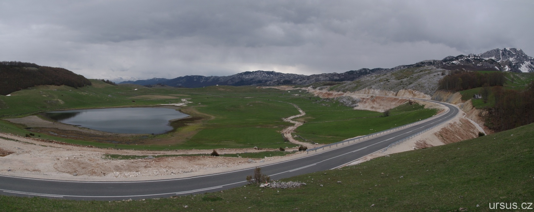 Protože máme ještě čas, jedeme se projet kolem vnějších Durmitorských jezer. Na fotce je vidět i zbrusu nová silnice vedoucí do Žabljaku.