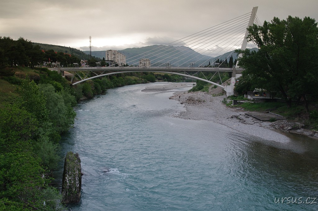 Přes řeku Moraču klene se moderní most.