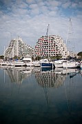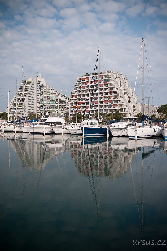 Turistické letovisko La Grande-Motte, typické svou moderní homogenní architekturou. Nejvýznačnější budovy jsou Sluneční a Měsíční pyramida.