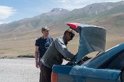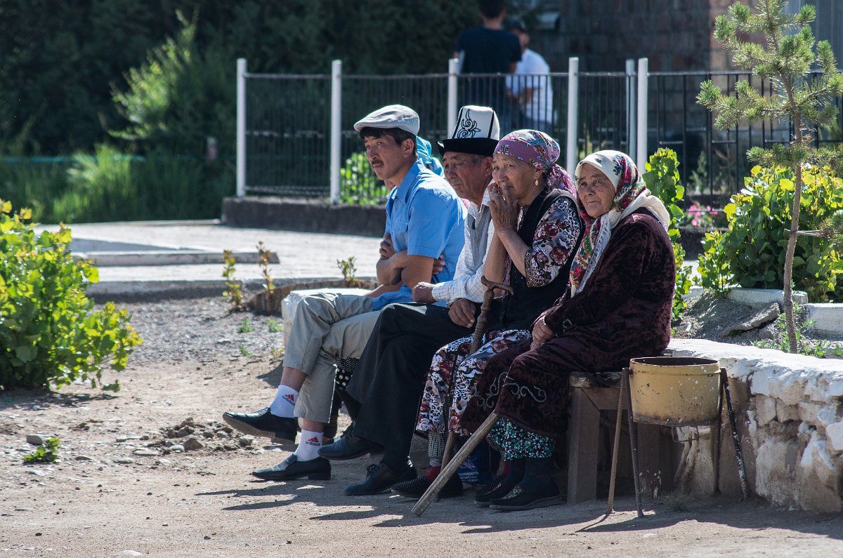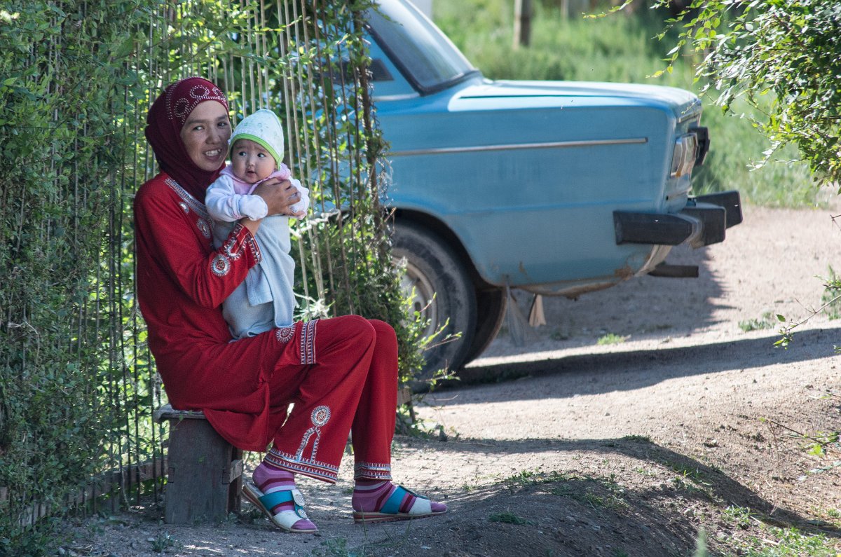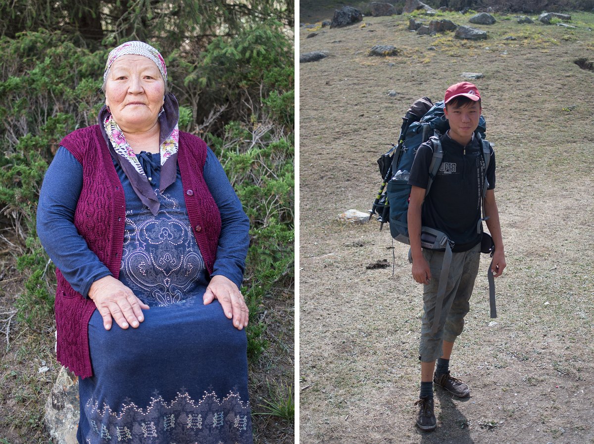 42 Jsme zpět u Barskoonského vodopádu a potkáváme bábušku, které fotím profilovku a klučinu, který si chce vyzkoušet můj 17kg batoh. Ačkoliv má zřejmě pocit, že batoh je nesnesitelně těžký, já jsem s výbavou nadmíru spokojen.